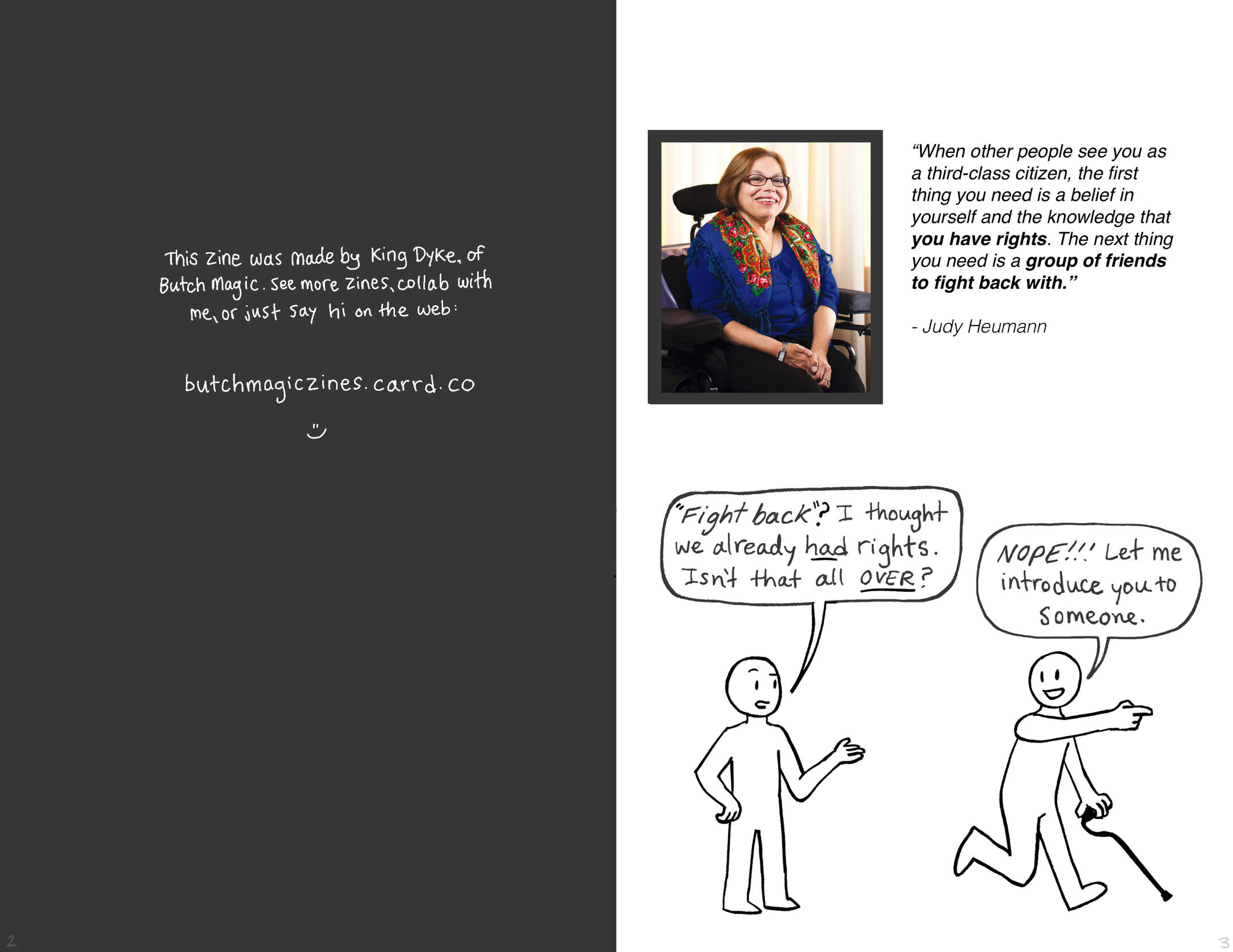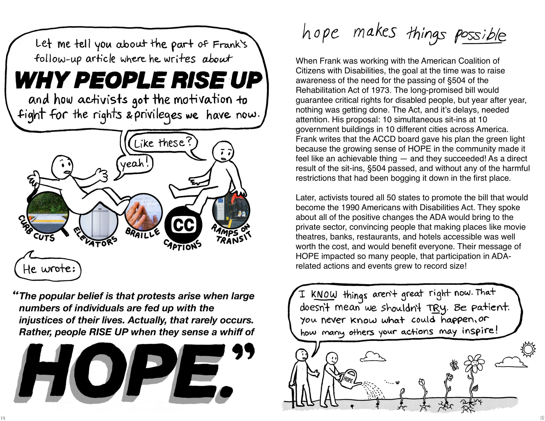 inspired by a 2005 blog post by disability rights pioneer frank bowe, a text-heavy zine about how hope is an essential ingredient for societal progress, and how YOU can help continue the fight for disability rights.