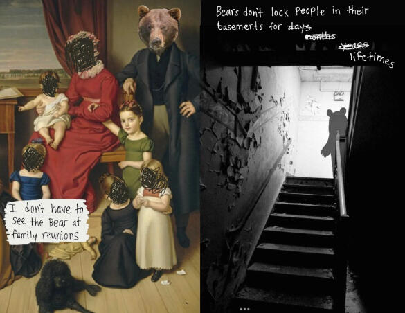 a collection of my favourite, gut-wrenching responses to the question: who would you feel safer with, alone in the woods? a man, or a bear?
