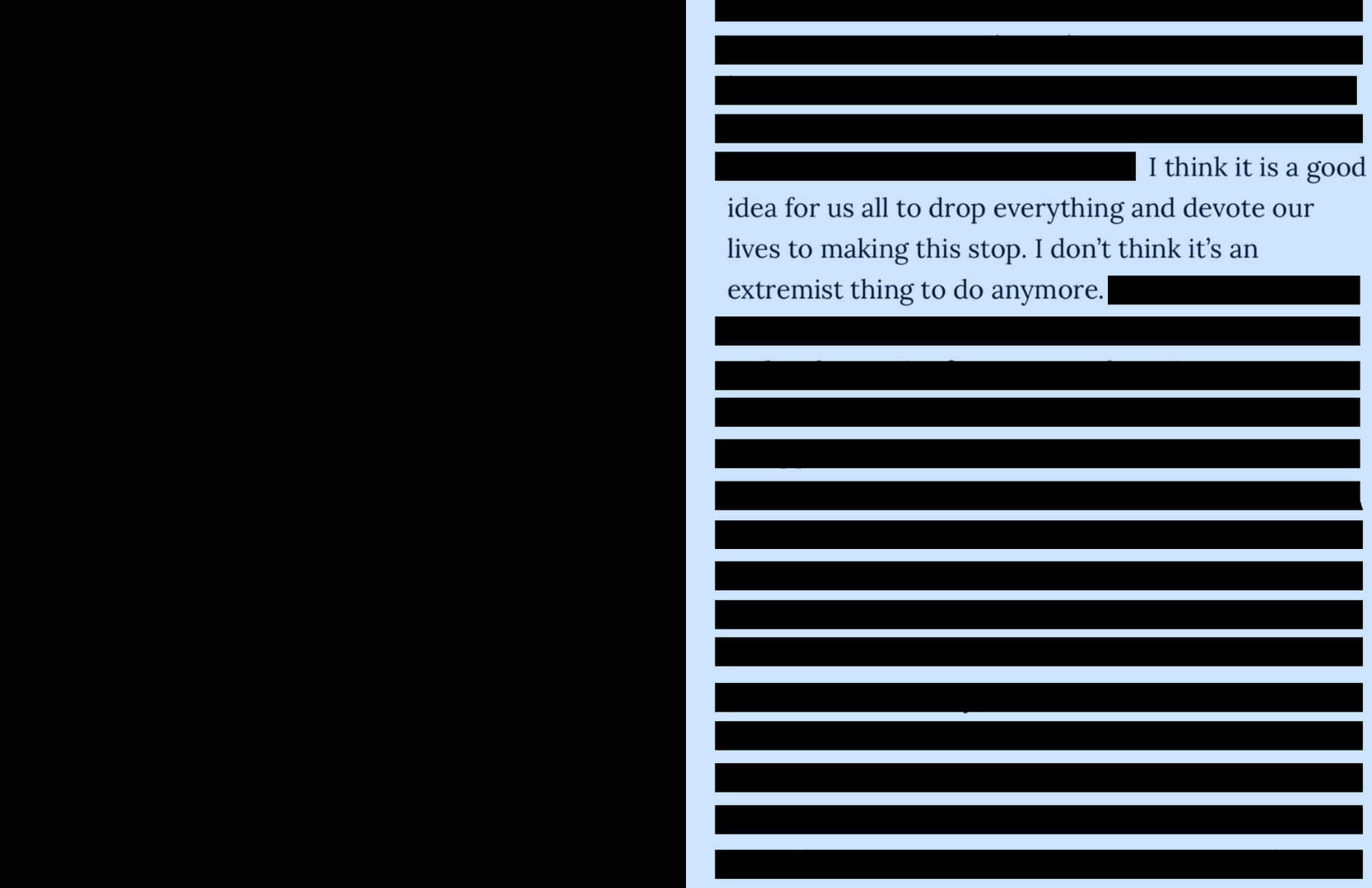 I think it's a good idea for us all to drop everything and devote our lives to making this stop. I don't think it's an extremist thing to do anymore.