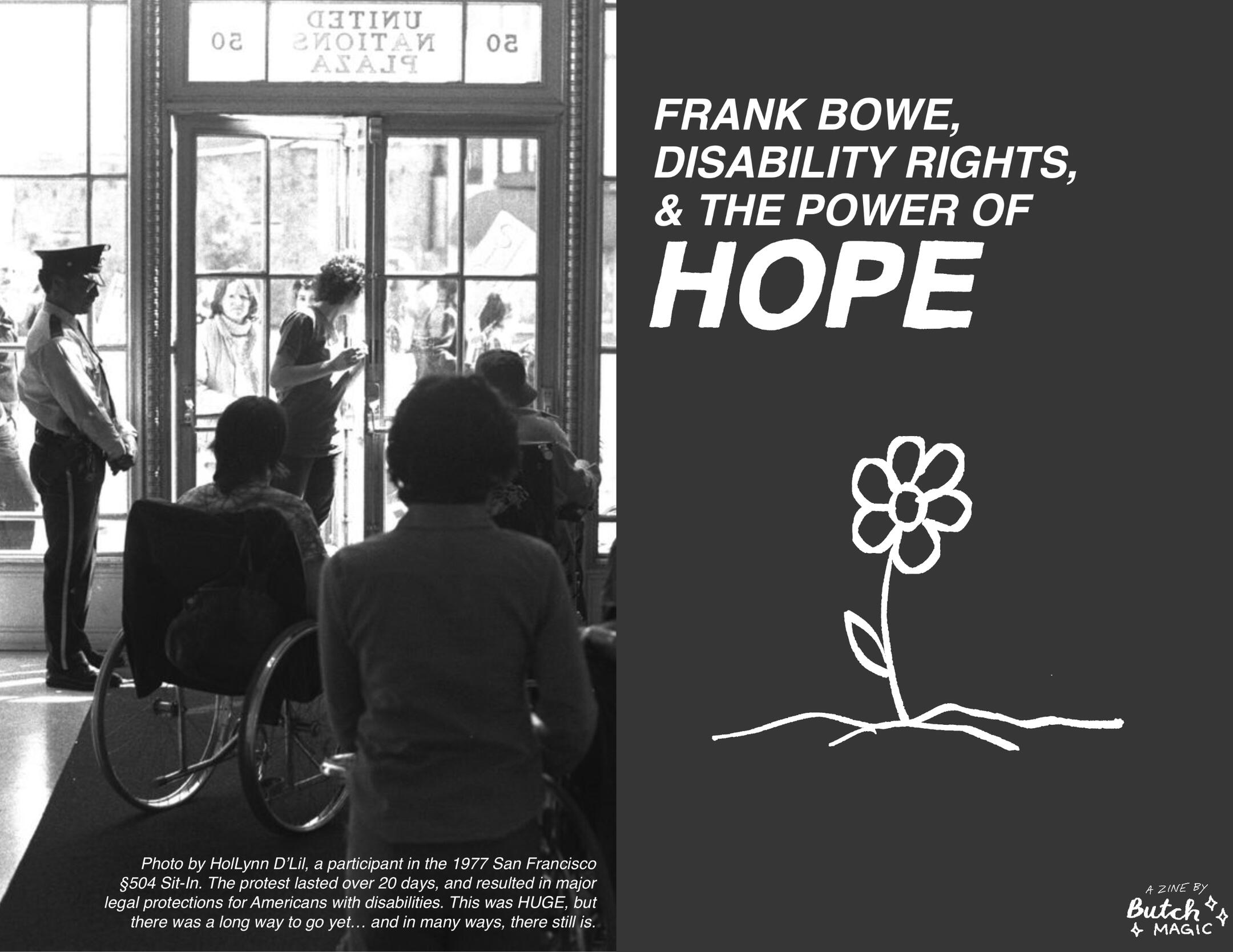 inspired by a 2005 blog post by disability rights pioneer frank bowe, a text-heavy zine about how hope is an essential ingredient for societal progress, and how YOU can help continue the fight for disability rights.